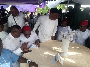 The Senator who was at reception venue Omu Girls Primary School in Ibusa, on Saturday, for the burial, was accompanied by the APC Deputy State Chairman,Barr. Francis obigbor;APC Delta North Senatorial Chairman,Ogbueshi Adizue Eluaka,State Secretary, Comrade Nick Ovuakporie, State Assist.,secretary,Comrade Anselm Onianwa , Organising Secretary ,Hon.Anthony Ejiofor, representative of Deputy Senate President,Barr. Alex Onwadiamu,Obi Akaeze Ibonye,Former Chairman of Oshimili North L.G.A,Hon. Louis Ndukwe,Hon. Ben Iwezue,Comrade Philip Elueme,Chief Ambrose Dike,Hon. Pat Mozie, Chief Kizito Ijeh ,Hon. Henry Mordi and other dignitaries joined Honourable Austine Nnabuife yesterday at Ibusa town.