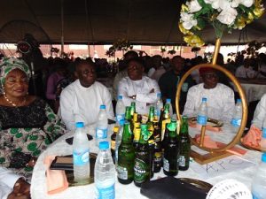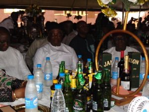 After the interment, there was a reception for guests at Anioshe Primary School, Ibusa. The reception began with the traditional presentation of wedged kolanut and drinks by the children and family members who ignored the heavy rain to ensure that the guests were well attended to.