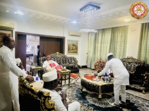 His Royal Majesty Prof. Epiphany Azinge (SAN, OON, FNIALS, FICMIC, LLD(HC), KSJI, KSG), the Asagba of Asaba accompanied by his Palace Chiefs paid a visit to Distinguished Senator Peter Onyelukachukwu Nwaoboshi in his Asaba White House residence on Saturday 27th September,2025. So, the rare visit of HRM Azinge to Senator Nwaoboshi highlights the cordiality between them for years.